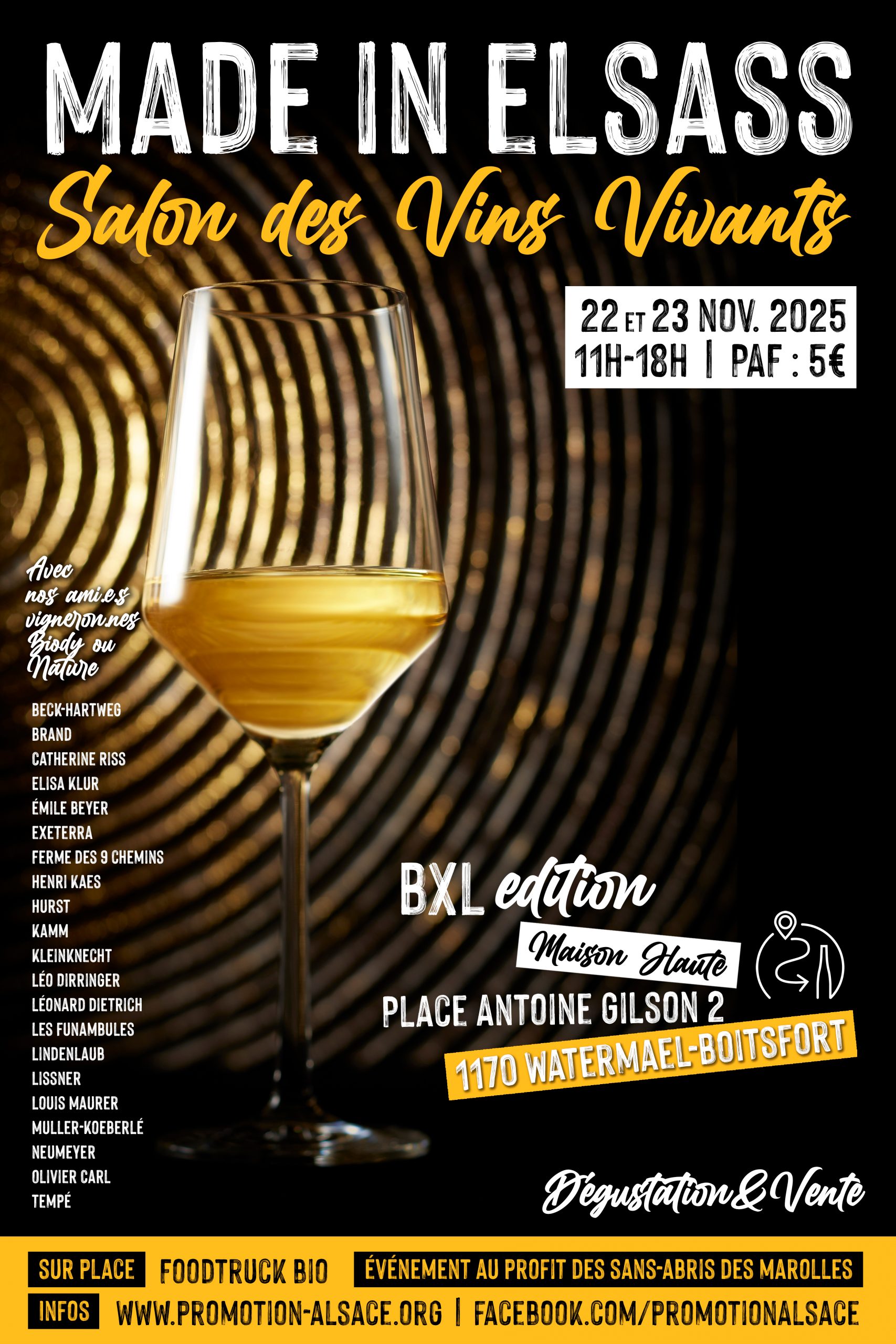 Pour sa 4ᵉ édition, le Salon Made in Elsass revient à Bruxelles avec une sélection toujours aussi exceptionnelle : 21 des meilleurs vignerons alsaciens en biodynamie ou vins nature, tous engagés dans une viticulture vivante et respectueuse de l’environnement.
